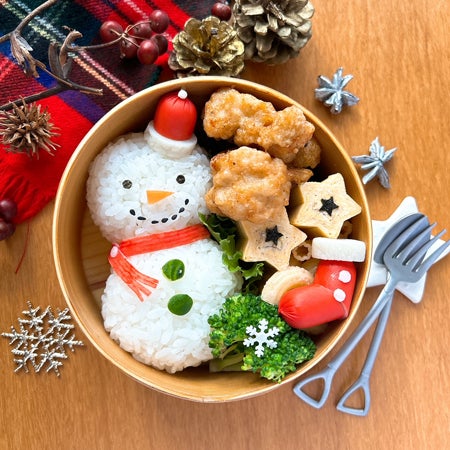 クリスマスのかわいいお弁当! サンタさんと雪だるまの楽しいおかず。