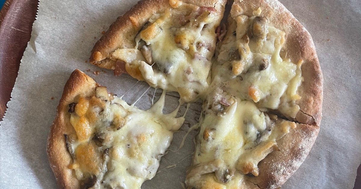 きのことベーコンのグラタンピザOlive Oil Life オリーブオイルライフ。