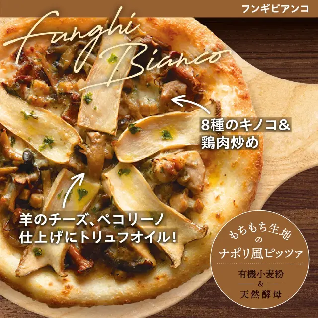 ナポリ風ピザ 「フンギビアンコ」天然酵母・有機小麦粉使用ピッツァ CINAGROシナグロ オーガニック専門店 イタリア展・イタリアフェア出品。