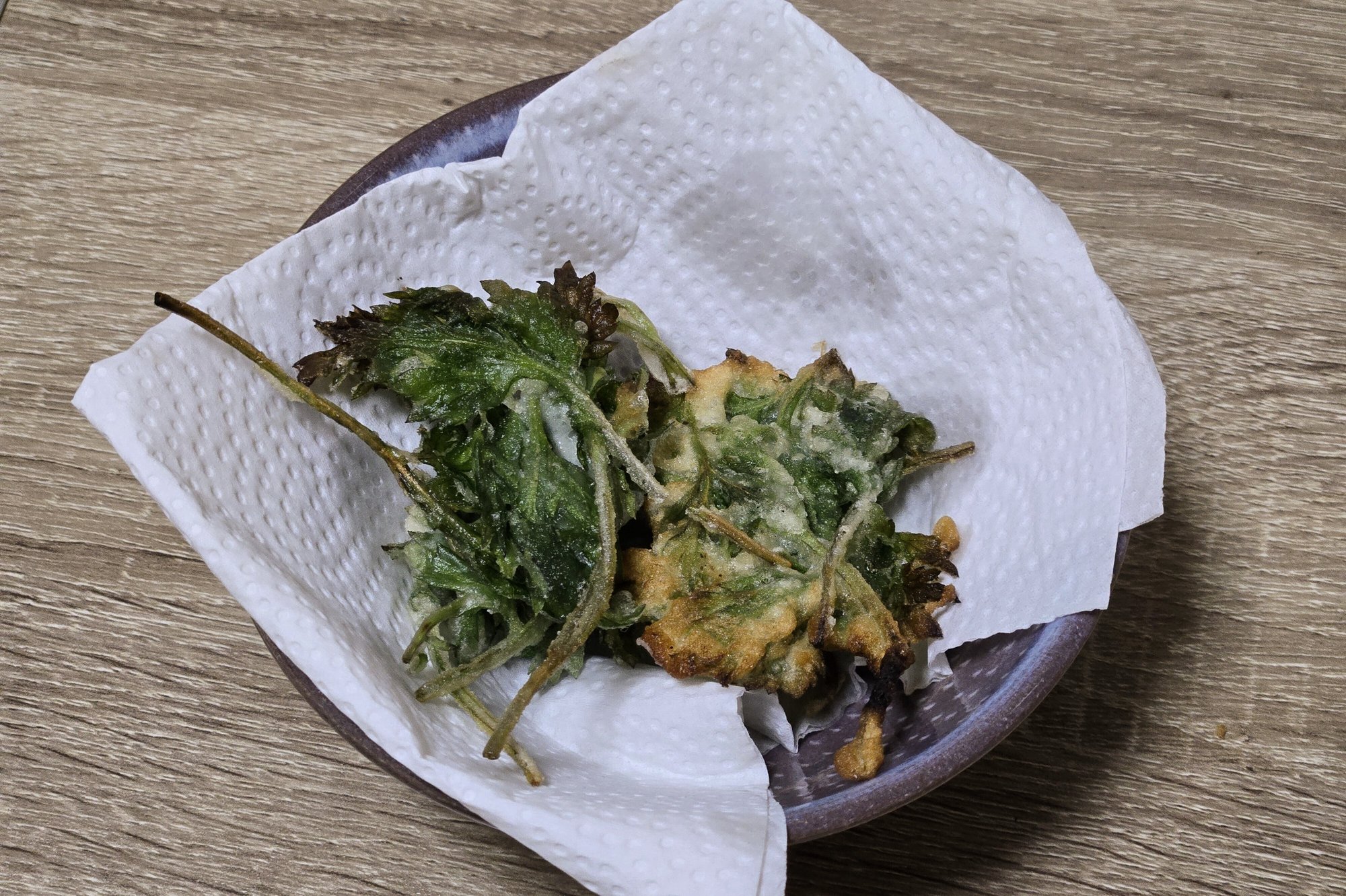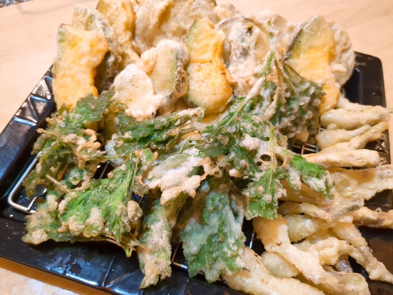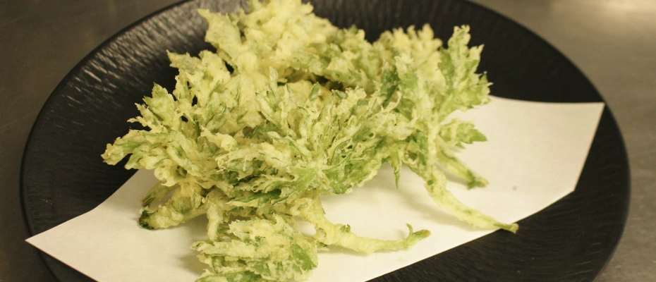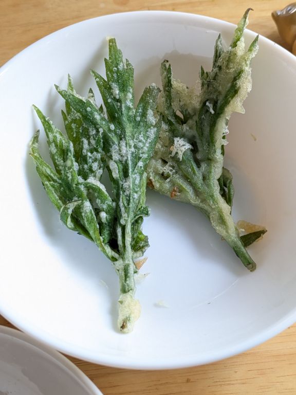 香ばしいよもぎ天ぷら。
