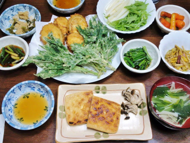 野草の天ぷらタンポポ・セリ・ヨモギ・ニラ・ノビル自由人の旅。