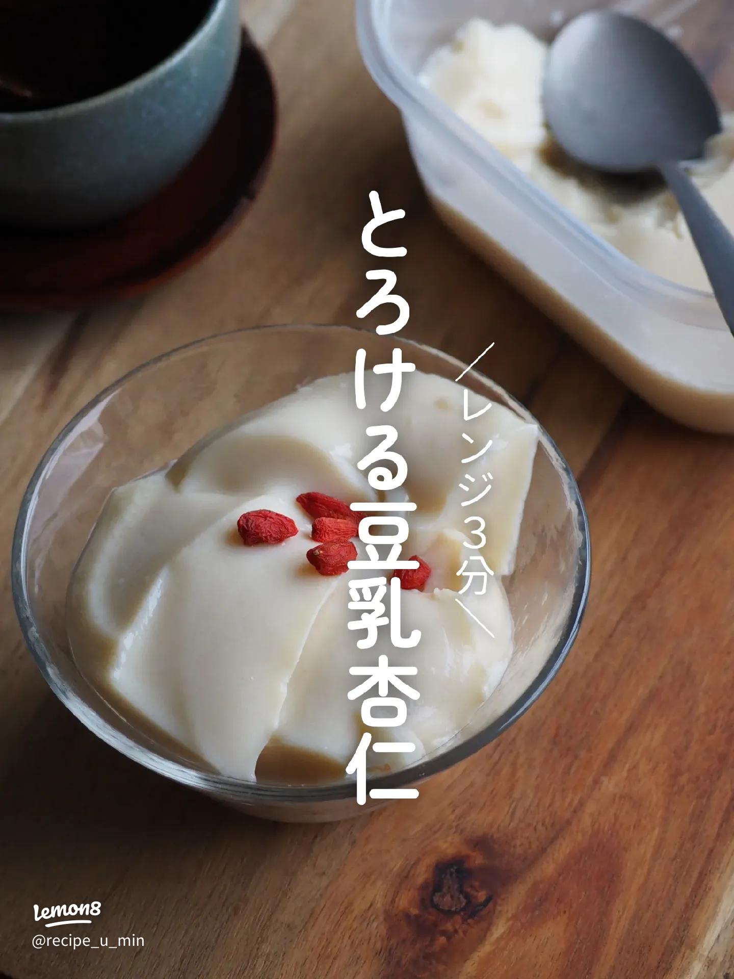 レンジ3分で作る!とろける豆乳杏仁豆腐のレシピ🍮。