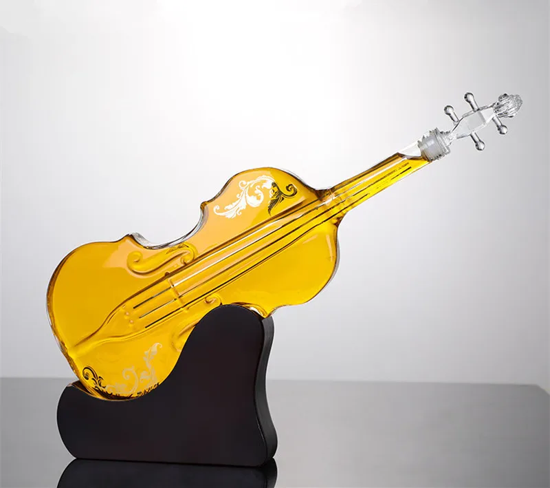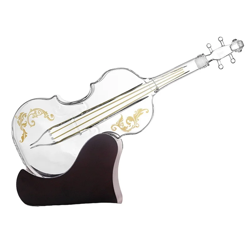 定制标志花式空豪华威士忌葡萄酒白兰地半透明透明小提琴形玻璃瓶。