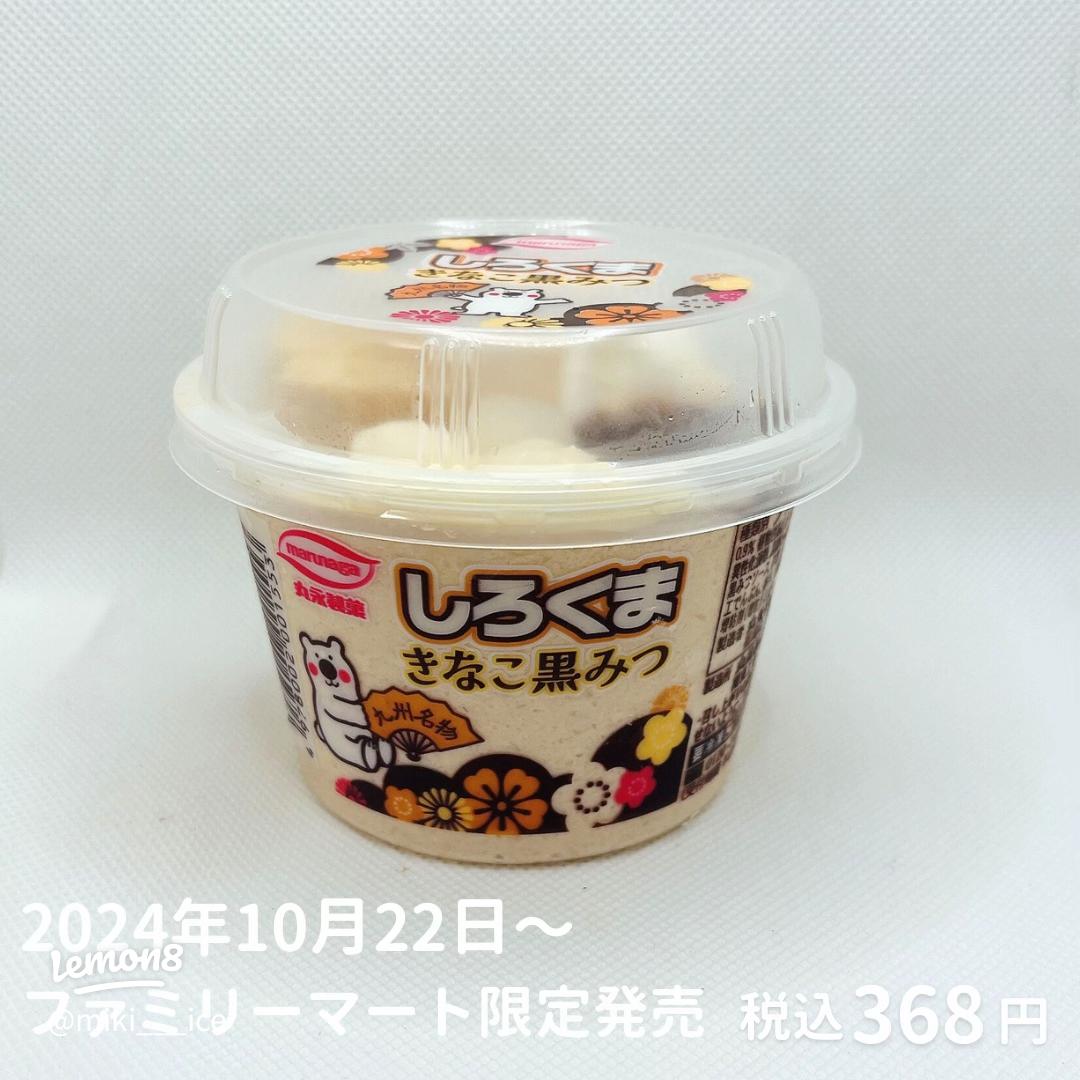 丸永製菓 しろくま きなこ黒みつ 種類別 ラクトアイス 内容量 230ml 302kcal 2024年10月22日~ ファミリーマート限定発売税込368円 しろくまアイスにファミマ限定の新商品🐻❄️ 黒みつ入りのきなこ氷に、バニラフロート・黒糖風味わらびもち・お餅・小豆あん・練乳を。